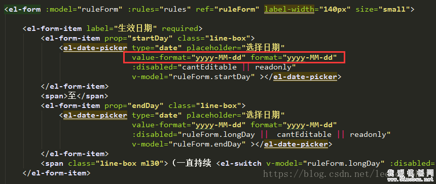 <el-date-picker v-model="ruleForm.startEndTime" @change="changeStartEndTime" type="daterange" range-separator="至" start-placeholder="开始日期" end-placeholder="结束日期"></el-date-picker>