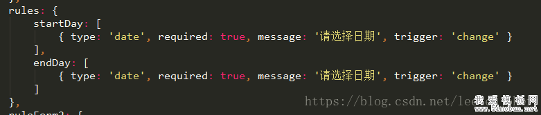 从上面的错误可以看出,应该是类型出错。可能是:elementUI自带的格式转换后会将绑定值转为字符串,而校验规则中的【type: "date'】已经不匹配,至于它的报错是因为转换为字符串,不是date对象所以没有getTime这个方法了。