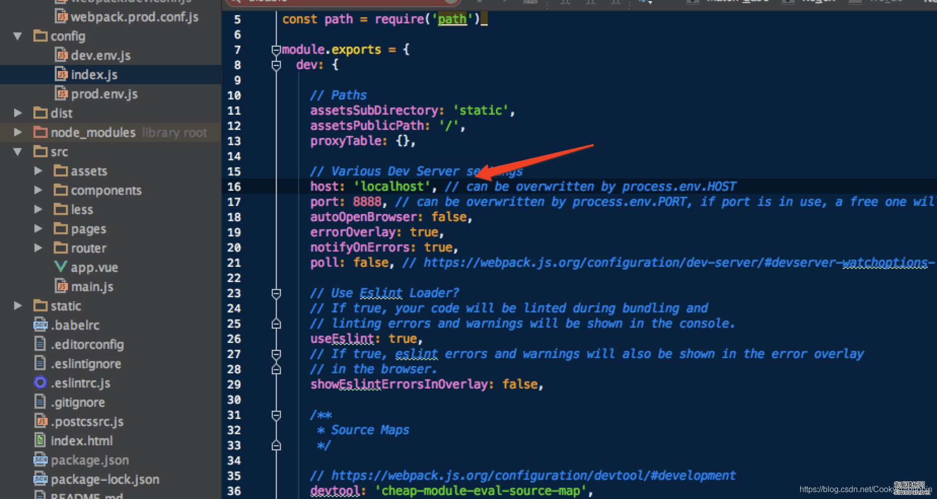 在config目录下修改index.js文件的host,这个默认是localhost,可修改成 xxx.com