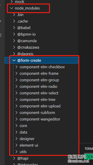 1、将node_modules/@form-create真个拷贝到项目的src/components目录下,将@form-create更名为form-create