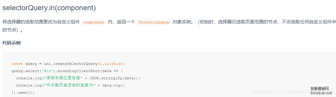 var width= this.$refs.text.$el.offsetWidth;而从上图可以看到,$refs、$el这些都不在支持,这时候就要用到uniapp给的API uni.createSelectorQuery() 来获取节点信息。