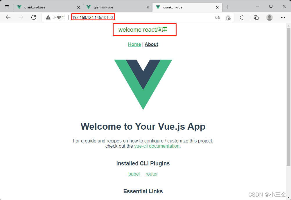 a.上面三图是我搭建的qiankun(以下称为QK),第一张为主图,第二张为子应用1,第三张为子应用2,三个应用通过上方菜单切换(实际中,你的父应用可以是所有菜单,或者按模块加载等)
