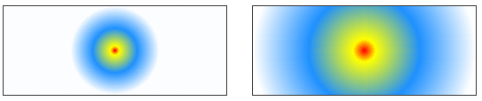 左边的圆的渐变大小由起始点(center)到近边的距离决定,而右边的圆则有起始点到远边的距离决定。
