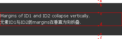 Collapsing margins: margins折叠现象只存在于临近或有从属关系的元素, 垂直方向的margin中. 文字说明可能让人费解, 下面用一个例子说明margin-collapsing现象.