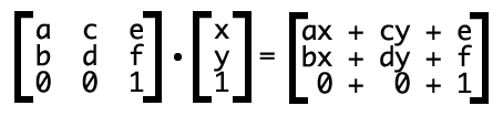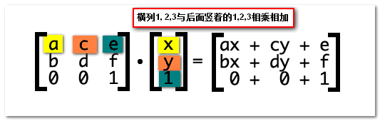 其中,x, y表示转换元素的所有坐标(变量)了。那后面的ax+cy+e怎么来的呢?