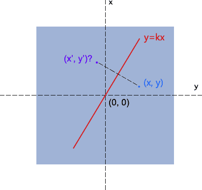 啊,高中数学来了,就当再高考一次吧,如下图,已经y=kx,并且知道点(x, y)坐标,求其对称点(x’, y’)的坐标?
