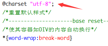 一般情况,我爱模板网在做网站时,很少注意css的字符编码问题。因为新建css文件的时候,默认就给加上去了,而且,保存的时候,现在的编辑器都很智能,自动的将文件编码保存的和代码编码一致,基本上不会出问题。今天,我爱模板网在给客户做一个响应式网站时,在火狐、谷歌、手机端的各种浏览器都没有问题,但是,在电脑端的IE10、IE9却发现,ul自带边距、自带列表符号,导致严重变形等等。我一调试,发现,在IE下,base.css的样式重置代码,一个都没起作用。找了半天,终于发现问题,如下图: