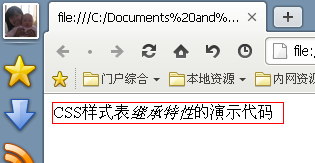 <p> CSS样式表<em>继承特性</em>的演示代码 </p>需要注意的是em是包含在p之内的。