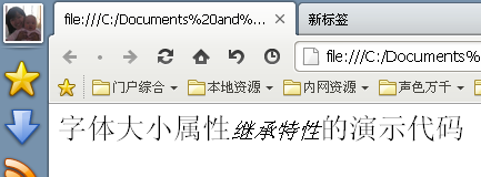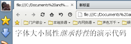 <p> 字体大小属性<em>继承特性</em>的演示代码 </p>为p定义字体大小为默认字体的80%。
