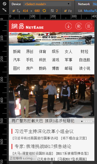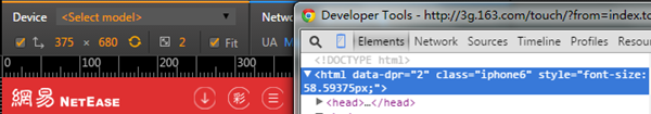 根据这个可以肯定它的设计稿竖着时的横向分辨率为640。然后你再看看网易在分辨率为320*680,375*680,414*680,500*680时,html的font-size是不是与上面计算的一致: