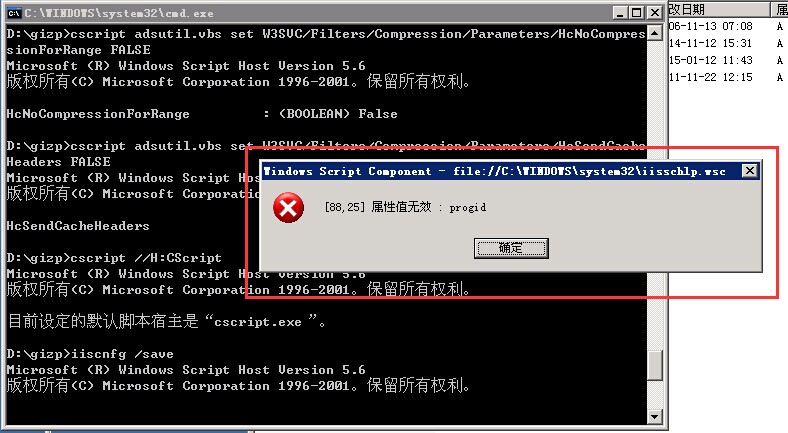 处理方法:重新注册下该组件,点击开始-运行,输入regsvr32 wshom.ocx 确定,然后再运行IIS6-SET-GZIP.cmd