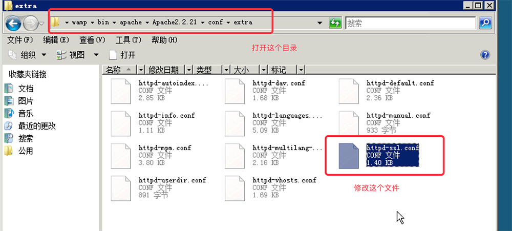 2).打开conf下面得extra文件夹,找到httpd-ssl.conf文件