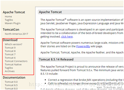 1,下载地址:http://tomcat.apache.org/,再选择你要的版本,下载完直接解压就能用了,因为我们已经配置JDK的环境。