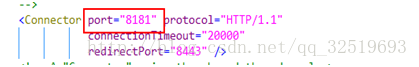4,在浏览器上打开Tomcat的页面。先查看启动时的端口号,conf目录下面的server.xml文件,用记事本打开,滚动到下面这个位置,8181就是我的Tomcat的端口号了。当然这些是可以修改的,不过要防止和其他应用的端口发生冲突,尽量使用1024以上的。