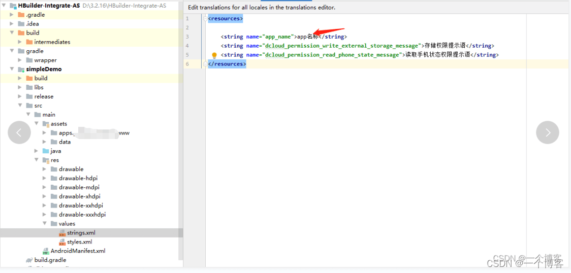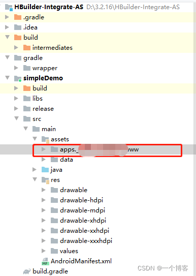 7、把获取到的 本地打包app资源,放到 HBuilder-Integrate-AS 里的 apps 文件夹下