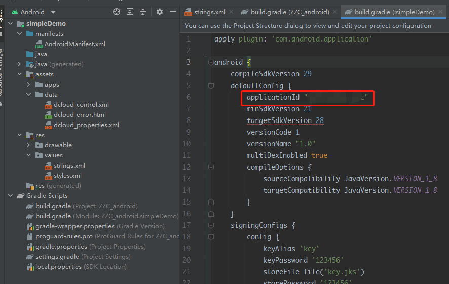 2、如果提示"未配置AppKey或配置错误",除了排除下上面提到的修改外,注意看下build.gradle 文件的 android.defaultConfig.applicationId 是否改成了自己的包名: