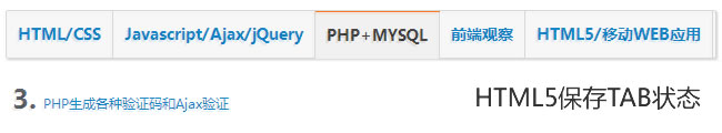 我们首先获取本地数据,得到对应的选中状态的TAB,如果未能获取到,则调用默认值,即选中第一个TAB。遍历TAB时,如果发现某个TAB是选中状态,则设置选中样式cur,即完成了TAB初始化的过程。接下来用户操作,当点击任意TAB时,设置对应的样式,并保存状态到本地,下次刷新就可以看到上次保存的状态。本文转载自:http://www.helloweba.com,版权归原作者所有。