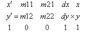 transform(m11, m12, m21, m22, dx, dy):这个方法必须将当前的变形矩阵乘上下面的矩阵: