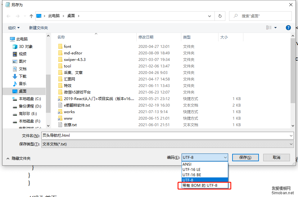页面顶部include导入,出现20像素空白,BOM头解决办法 来源:我爱模板网 作者: 类型:图文教程 点击次数: 发布时间:2021-07-13 22:48:38 我爱模板网在使用php模板,用include导入头部时,头部出现了20像素高度的空白,打开控制台,看到的字符: 这个我爱模板网知道,是bom头,如果php文件保存为带bom头的文件立马会报错,只不过这是html,所以没有报错。只要把要引入的头部,用editplus或者记事本另存为,选择不带bom头即可: TAGS: include 空白 BOM头 上一篇: HTML、JS、CSS特殊字符写法合集 下一篇: 非响应式网站在手机下显示不全