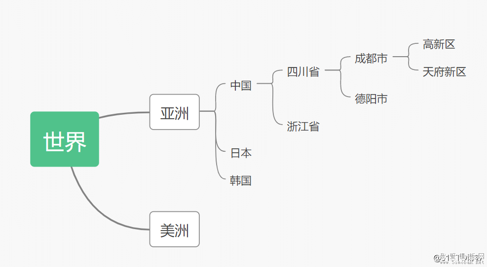 ps:这里假设有多棵树,根节点是亚洲、美洲等