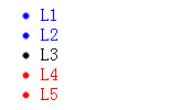 L4和L5会是红色,L1和L2会是蓝色,L3是默认颜色