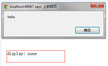 下面的代码,先弹出"hello"对话框,然后hid-1会显示,hid-2仍然是不可见的。