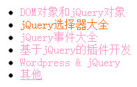 <li><a href="#" title="jQuery选择器大全" class="item-selected">jQuery选择器大全</a></li>