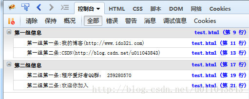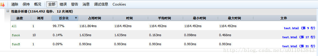 说明一下,LZ测试时,在All()中未加alert,控制条没有输出,加上了之后,就有了一张性能分析表,暂时不清楚原因,若你知道,可以评论。
