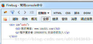 console.dirxml()用来显示网页的某个节点(node)所包含的html/xml代码。