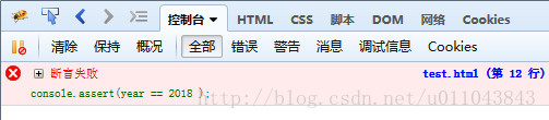 var result = 1; console.assert( result ); var year = 2014; console.assert(year == 2018 );1是非0值,是真;而第二个判断是假,在控制台显示错误信息