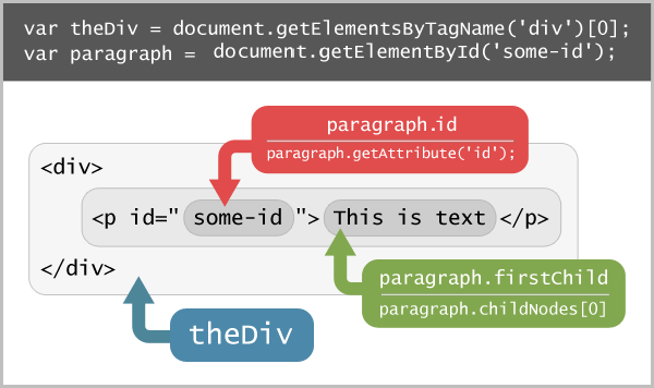 变量introParagraph现在已经引用到该DOM节点上了,我们可以对该节点做很多事情,比如查询内容和属性,或者其它任何操作,甚至可以删除它,克隆它,或者将它移到到DOM树的其它节点上。