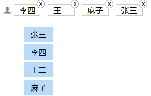 js点击文字将文字显示到对应区域 来源:未知 作者: 类型:图文教程 点击次数: 发布时间:2017-02-16 16:39:47 我爱模板网做的一个小功能,非常简单,点击列表的时候,将列表中的文字添加到头像的后面。并且,添加上去的文字可以删除。如果列表中的文字已经出现在上面,则再次点击,不会再将文字放上去,当点击删除按钮后,再点击列表,文字又会被添加到头像后面。基于jquery写的。大神请跳过! 效果图: 运行下面的代码查看效果: <!doctype html> <html> <head> <meta charset="utf-8"> <title>js点击文字将文字显示到对应区域 - 我爱模板网 5.jimth.com</title> <style> li{list-style:none; width:50px; margin:5px; cursor:pointer; text-align:center; padding:5px; background:#B7DBF9;} span{display:inline-block; height:25px; line-height:25px; vertical-align:top;} b{font-weight:normal; position:relative; margin-right:15px; border:1px solid #ccc; padding:0 10px;} i{font-style:normal; position:absolute; font-size:12px; right:-10px; top:-10px; cursor:pointer; border:1px solid #999; background:#fff; border-radius:9999px; display:block; width:15px; height:15px; line-height:15px; text-align:center;} </style> </head> <body> <img src="https://5.jimth.com/view/demoimg/testAvatar.jpg"><span></span> <ul> <li>张三</li> <li>李四</li> <li>王二</li> <li>麻子</li> <li>伟平</li> </ul> <script src="https://5.jimth.com/tpl/js/jquery-1.8.3.min.js"></script> <script> $(function(){ $("ul li").each(function(index) { $(this).click(function(){ if($(this).attr("biaoji") != "已经点过了!"){ var _html = $("span").html(); _html += "<b data-n='"+index+"'>"+$(this).html()+"<i>X</i></b>"; $("span").html(_html); $(this).attr("biaoji","已经点过了!"); $("span i").click(function(){ var i = $(this).parent().data("n"); $(this).parent().remove(); $("ul li").eq(i).removeAttr("biaoji"); }) } }) }); }) </script> </body> </html 提示:您可以先修改部分代码再运行 TAGS: js教程 上一篇: JS实现密码加密 下一篇: js表单验证,js验证邮箱,js验证手机号