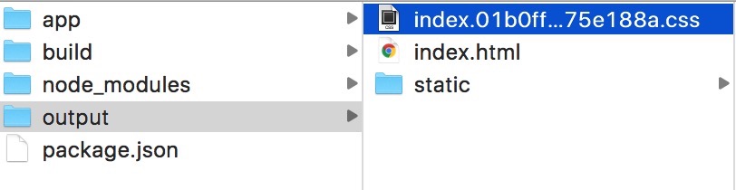 现在我们只有一个js文件输出了,并没有css文件输出,在生产环境,我们希望css文件生成单独的文件,所以我们要使用 extract-text-webpack-plugin 插件,安装: