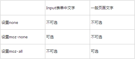 1.firefox下可添加*{-moz-user-select:-moz-none;} 样式解决