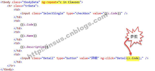 Angularjs为ng-click事件传递参数_AngularJS 来源: 作者: 类型: 点击次数: 发布时间:2017-06-15 00:00:00 在angularjs开发中,我们需要为ng-click事件传递一个参数。 在js中,可以接到参数: 演示: TAGS: angularjs ng click 上一篇: 详解原生js实现offset方法_javascript技巧 下一篇: Bootstrap Tree View简单而优雅的树结构组件实例解析