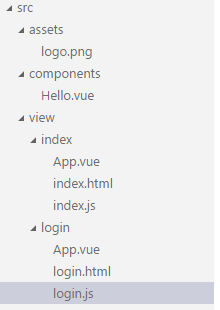 1.上面的目录没办法满足我们多入口的要求,我们希望的是html放在一个views文件夹下面,相关业务应用的vue放在一起,对就是这个样子的