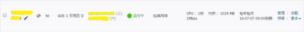 CPU: 1核 / 内存: 1024 MB / 带宽:1Mbps / 操作系统: CentOS 7.0