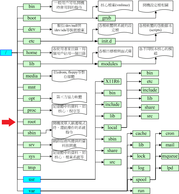 登陆服务器后。这里对于我这个 Linux 菜鸟有个大坑………就是 Linux 系统常见的目录结构和文件放置区域。