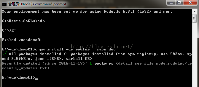 2、安装 vue-router 插件,运行cmd进入到项目目录下面,运行以下命令: