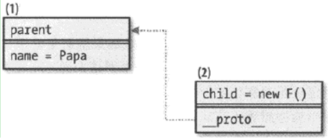 从结果可以看出,该模式和模式三不同,现在你delete子对象的name属性,就不会将父对象的name属性显现出来了。原型链图: