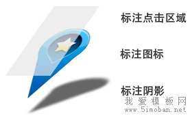 在地图API实现中,这三个DOM元素分别位于不同的容器中,这些容器可以通过map.getPanes()方法获得,其中markerMouseTarget就是标注点击区域所在容器、markerPane为标注图标所在容器,markerShadow为标注阴影所在图层。你可能会在自定义覆盖物时需要这些容器对象,这里只需要知道Marker的各个部分是如何放置的即可。