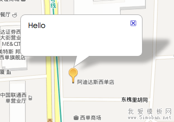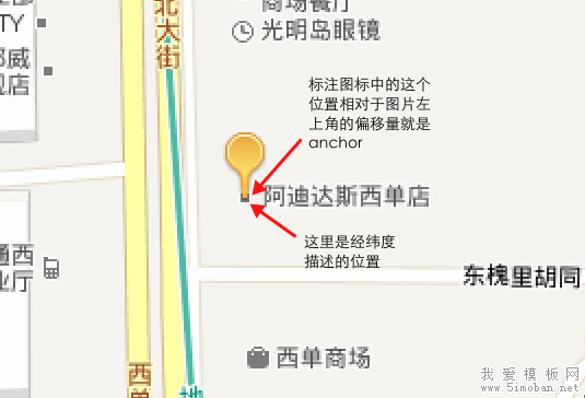 从上面的图可以看出,不论地图如何变化标注始终指向“西单商场”的位置。
