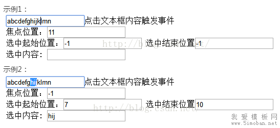 最后放出DEMO:JS获取文本框焦点光标位置、选中起始位置、终止位置、选择内容DEMO