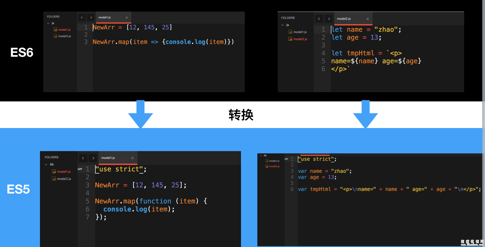 在根目录下新建js文件夹, 并新建两个es6语法的js文件, 使用npm run build转换, 查看结果