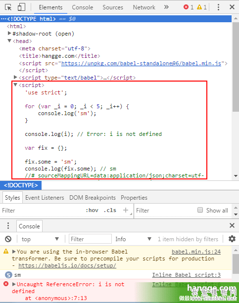 (2)访问页面,可以看到 ES6 代码已经自动被转换成 ES5 的了。