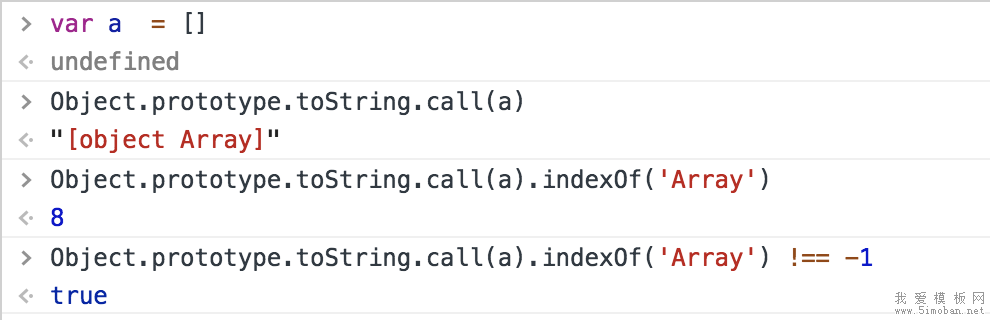 最后: Object.prototype.toString.call(variable).indexOf('Array') !== -1 比对数值是否等于-1就能判断是否是数组类型 是为true