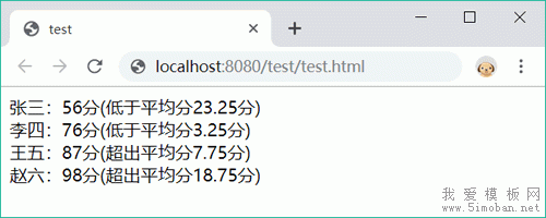 ("低于平均分" + (avg - n))) + "分)<br>"; //设计替换文本的内容