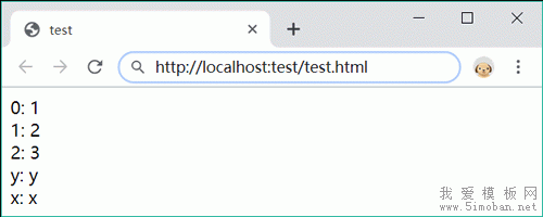 在上面示例中,共获取 5 个元素,其中包括 3 个原生元素,一个继承的属性 x 和一个额外的属性 y,结果如图所示。