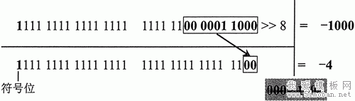 把数值 -1000 向右移 8 位,则返回值为 -4。