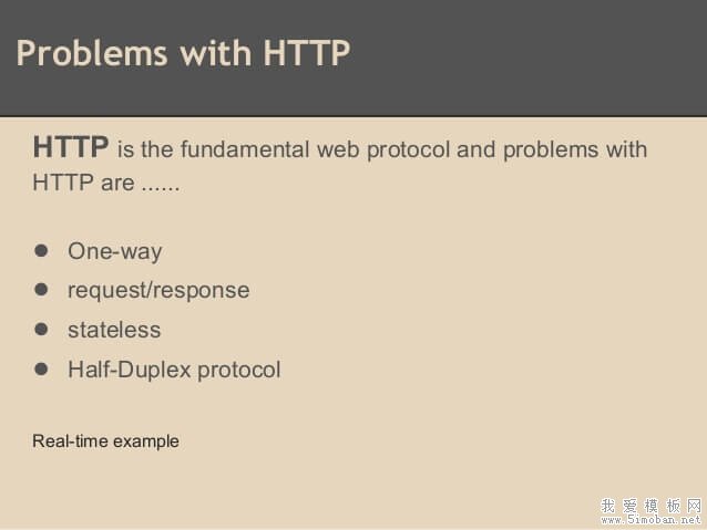 比如我们查询今天的天气,只能是客户端向服务器发出请求,服务器返回查询结果,而不能实现服务器主动向客户端推送信息。
